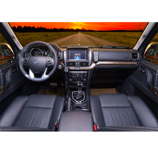 電子四輪驅(qū)動(dòng)、智能一鍵啟動(dòng)系統(tǒng)、發(fā)動(dòng)機(jī)電子防盜系統(tǒng)、車(chē)內(nèi)中控鎖、主副駕駛安全氣囊、電動(dòng)外后視鏡(帶折疊加熱功能)、四門(mén)電動(dòng)門(mén)窗、真皮方向盤(pán)、真皮座椅、駕駛座六項(xiàng)調(diào)節(jié)含記憶功能、空調(diào)、USB輸入接口,8英寸液晶顯示屏、藍(lán)牙系統(tǒng)、倒車(chē)?yán)走_(dá)、倒車(chē)影像,GPS導(dǎo)航、氙氣大燈、LED日間行車(chē)燈、電子ABS+EBD、剎車(chē)輔助HBA、非承載式全金屬車(chē)身。